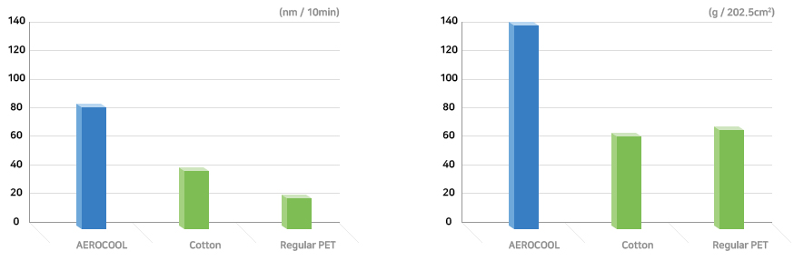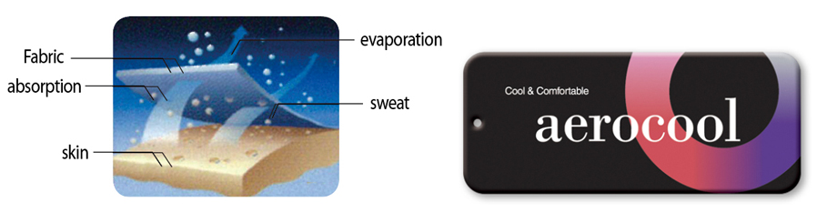 에어로쿨은 섬유표면에 형성된 미세한 통로를 이용한 빠른 수분 흡수와 탁월한 건조기능을 갖춘 대표적인 기능성 원사로 스포츠 및 레저 활동에 최적의 상태를 유지시켜 주는 제품입니다. 피부 위의 땀을 더 많이 흡수하고 빨리 마르게 하는 효과를 가지고 있어 우리아이 활동복의 소재에 적합 합니다.